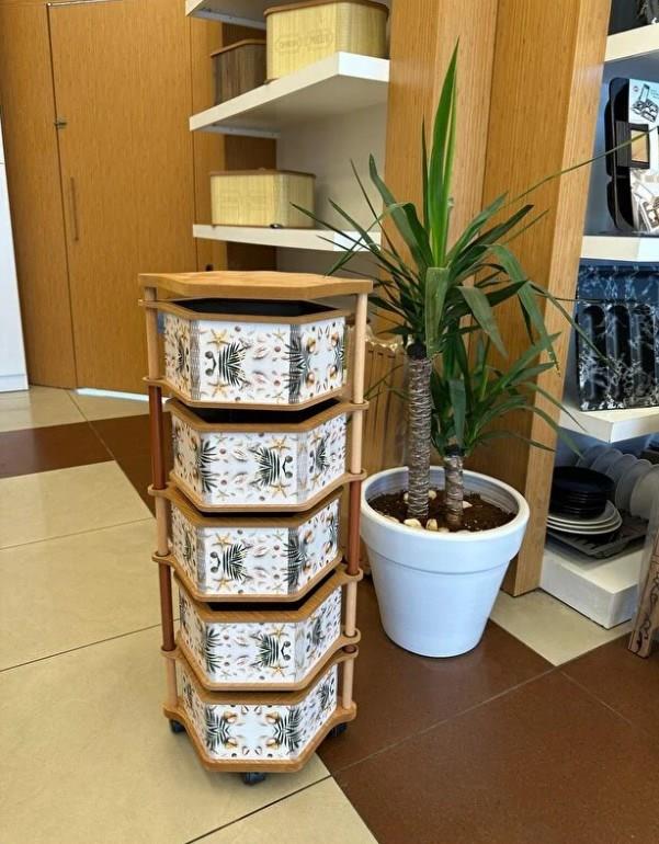 Ahşap Altıgen Sebzelik 5 Katlı Yana Açılır Patates Soğan Tekerlekli Sebzelik Deniz