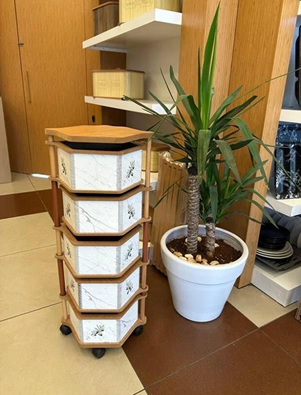 Ahşap Altıgen Sebzelik 5 Katlı Yana Açılır Patates Soğan Tekerlekli Sebzelik Zeytin