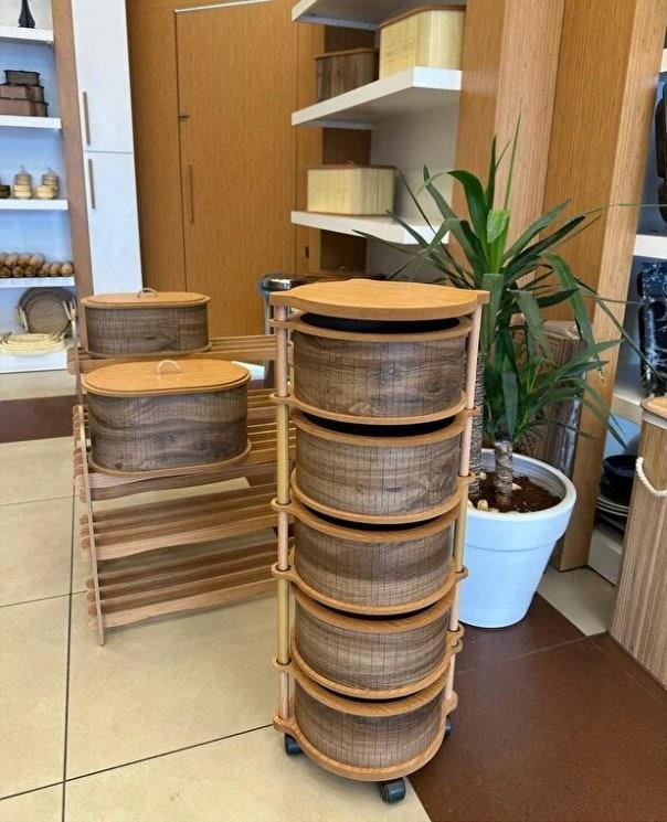 Ahşap Yuvarlak Sebzelik 5 Katlı Yana Açılır Patates Soğan Tekerlekli Sebzelik